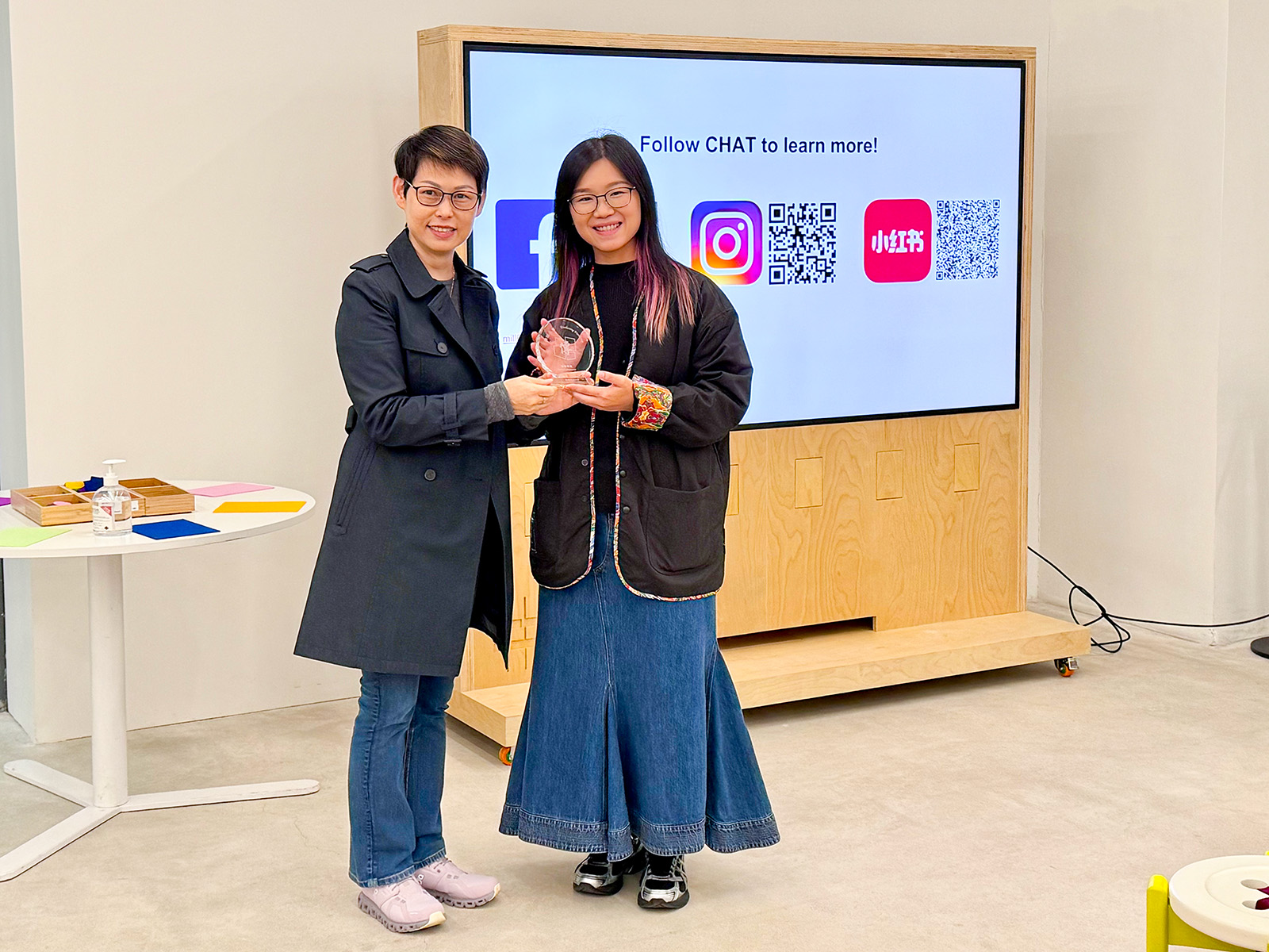 Ms. Ada Leung is presented with a commemorative gift from the School of Communication