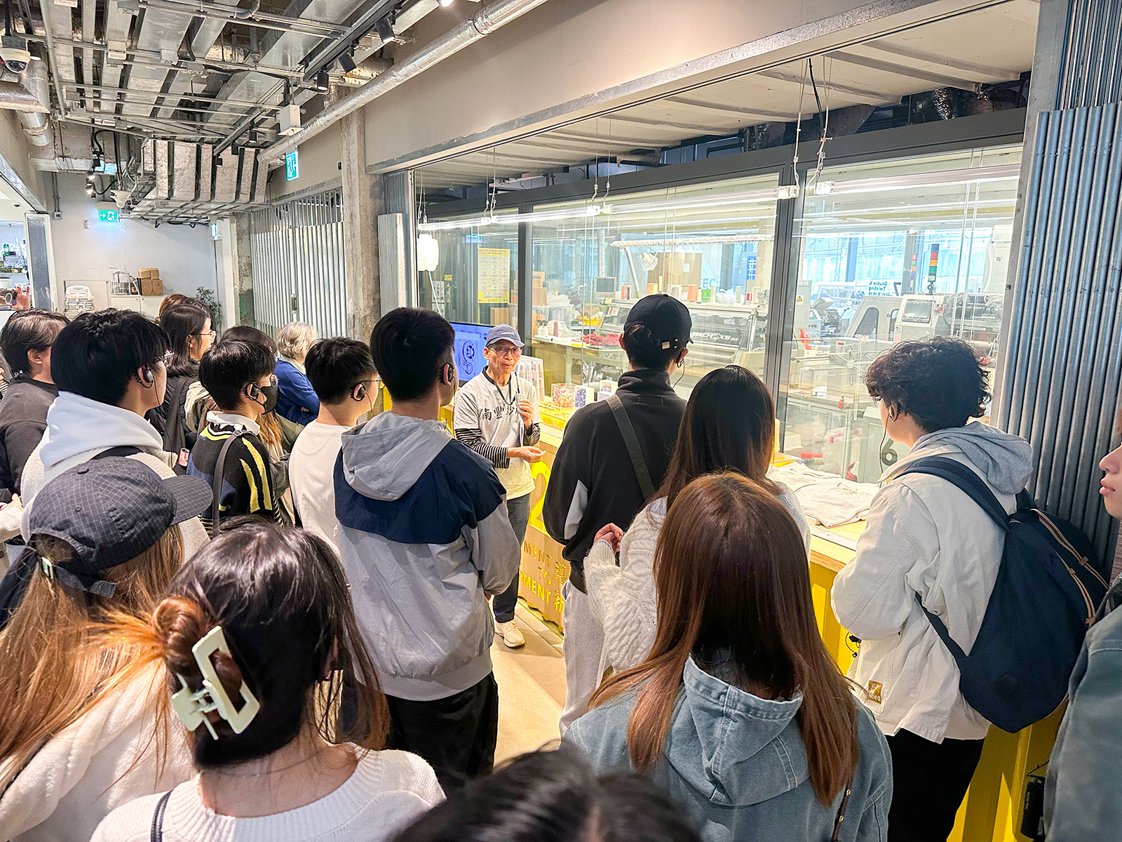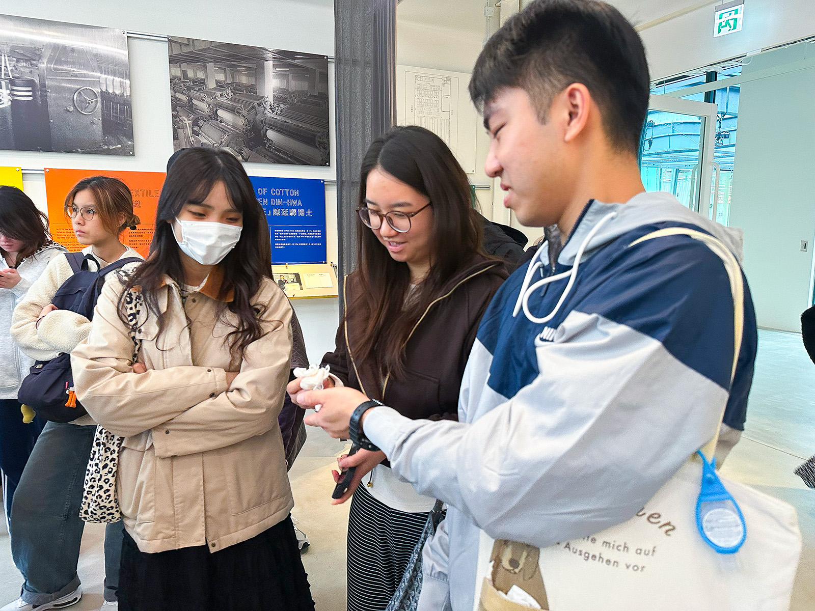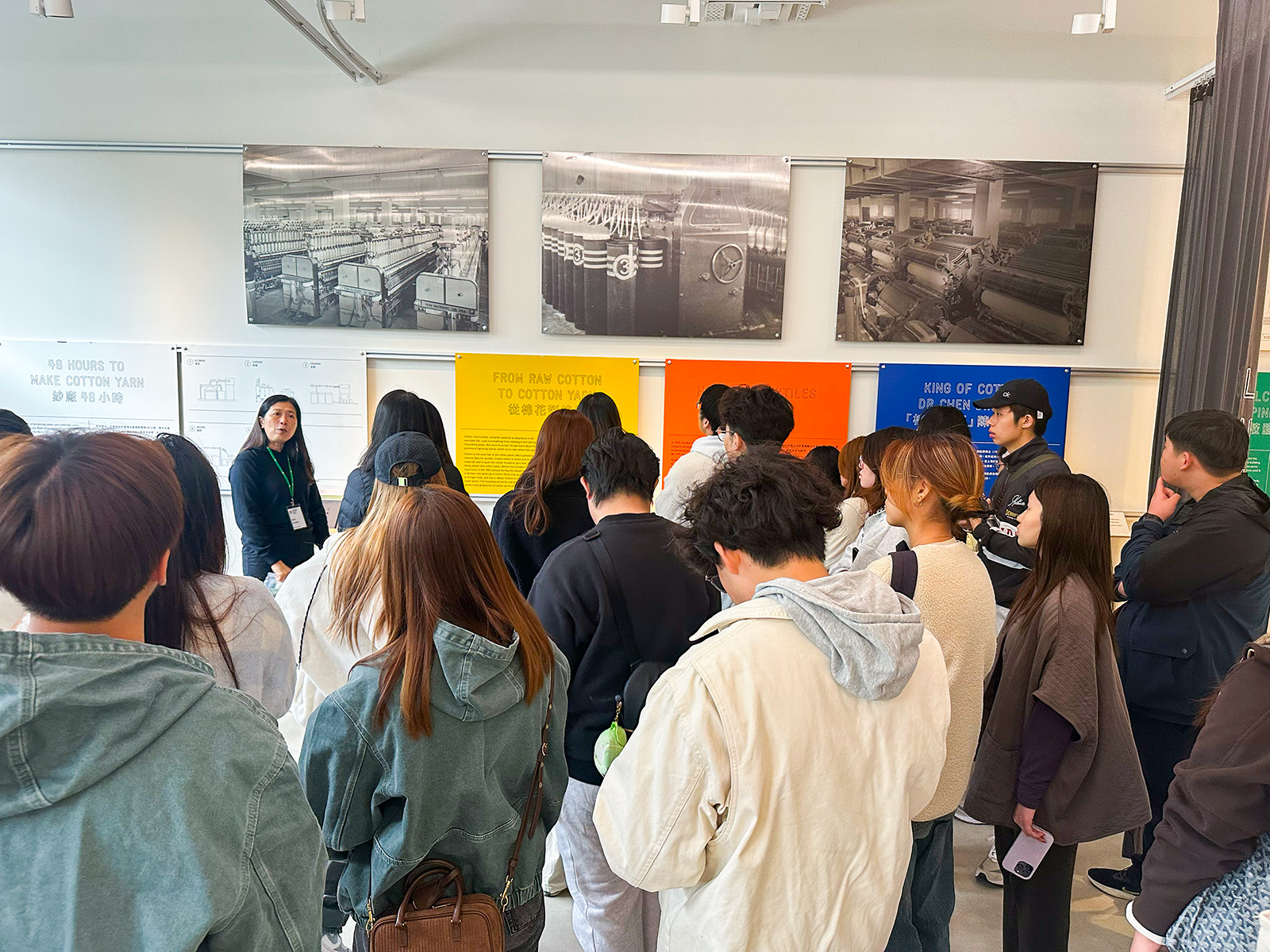 The visit was mainly divided into two parts: a guided tour and a sharing session. First, the guide led students through three original factory buildings of The Mills, including The Mills Fabrica, The Mills Shopfloor, and CHAT Factory 6, allowing students to learn about the history of the Mills and its revitalization process. Afterward, the teachers and students went to the Centre for Heritage Arts & Textile and visited the Textile Culture and Art Museum, where colleagues from The Mills guided them through the museum to understand the spinning processes of the past.