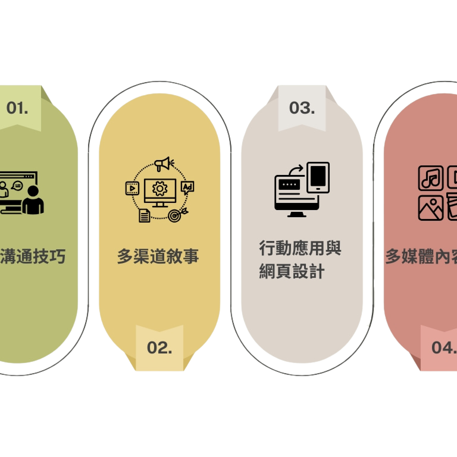 - 建基於傳播理論、跨文化傳播、傳媒法規與道德的人際溝通。